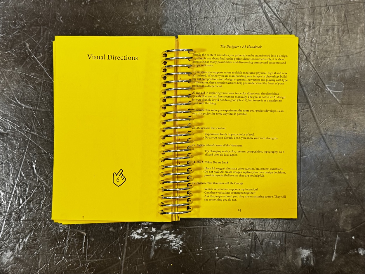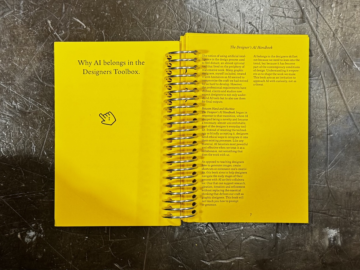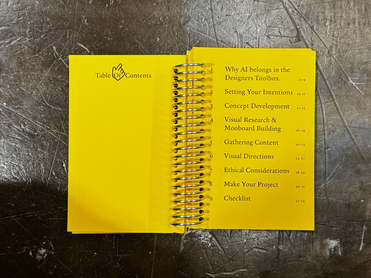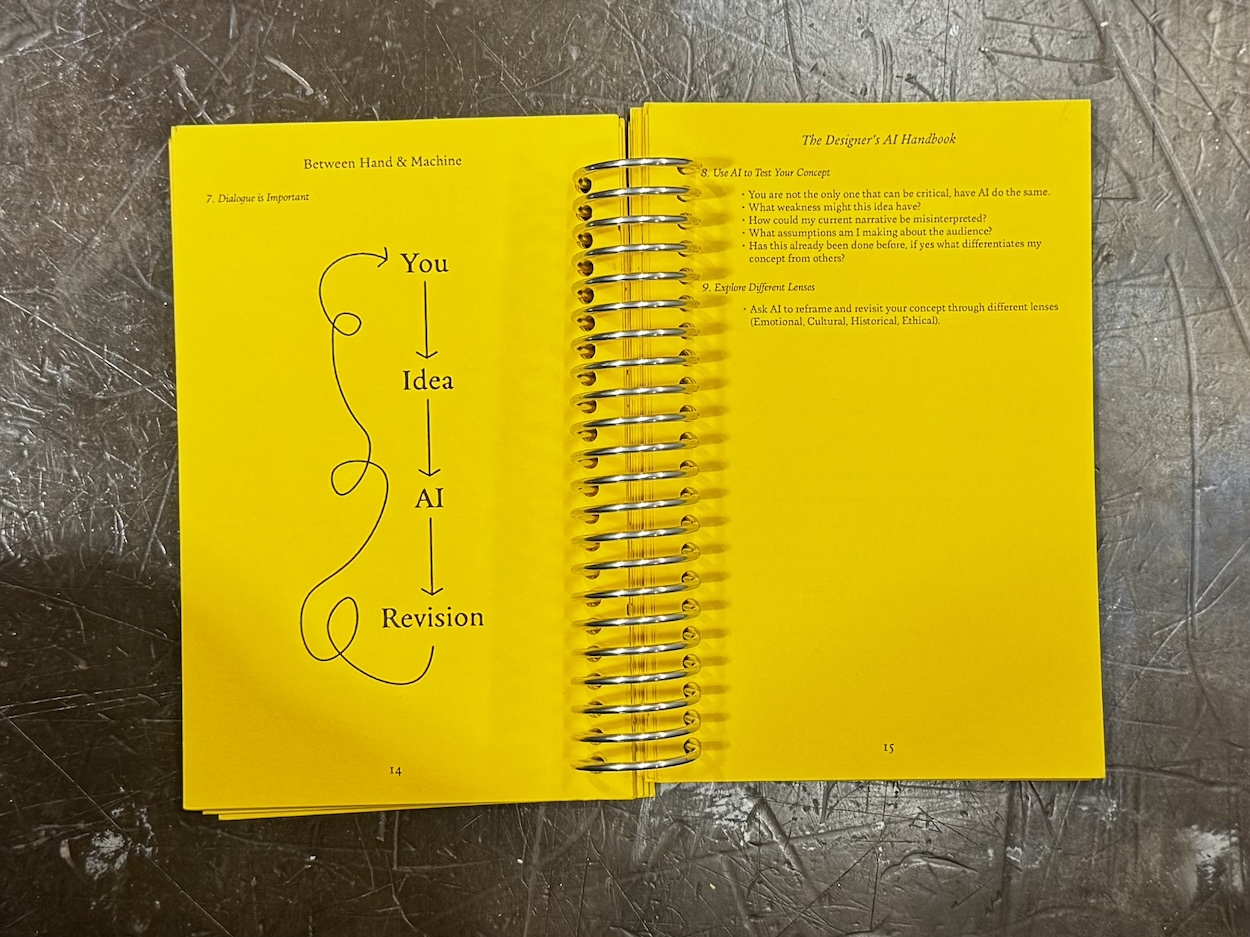 As artificial intelligence becomes increasingly present in creative industries, designers are being pushed to apply it to their practice. In graphic design, AI has begun to be a part of all stages within a project, especially the early stages of research, visual exploration and conceptual ideation. These phases within any creative process are foundation to the final output, where the biases of designers, their intuitions and personal taste emerge most often. When AI begins to aid in the early stages of design, subtle shifts can occur where the influence of intention and originality can be skewed. Aiming to negate these shifts, I designed and wrote a framework that helps designers critically engage with AI tools while maintaining their human touch.