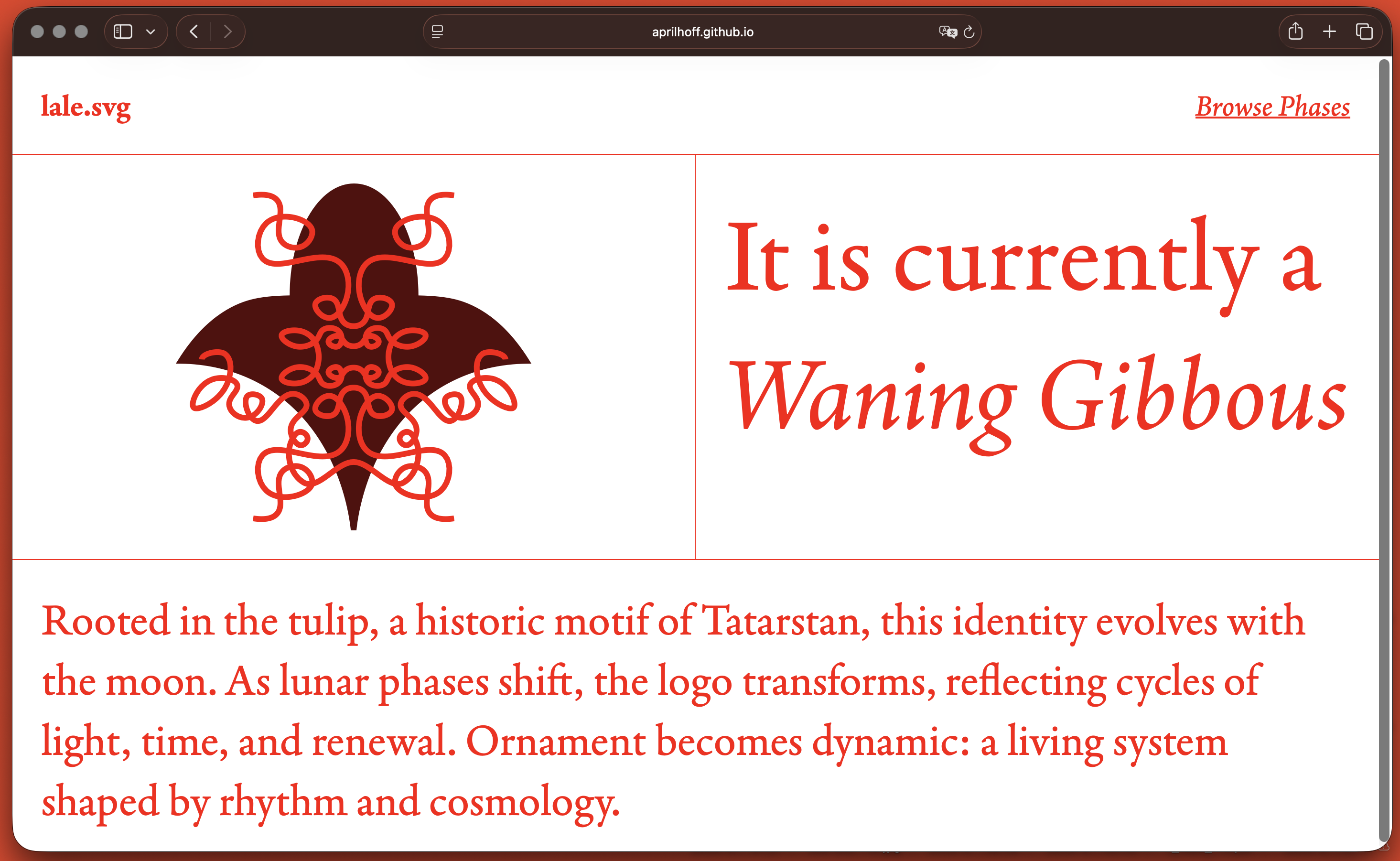 Using a real-time API to retrieve the current lunar phase in Tatarstan, I designed a dynamic logo system that evolves in sync with the moon’s cycle.